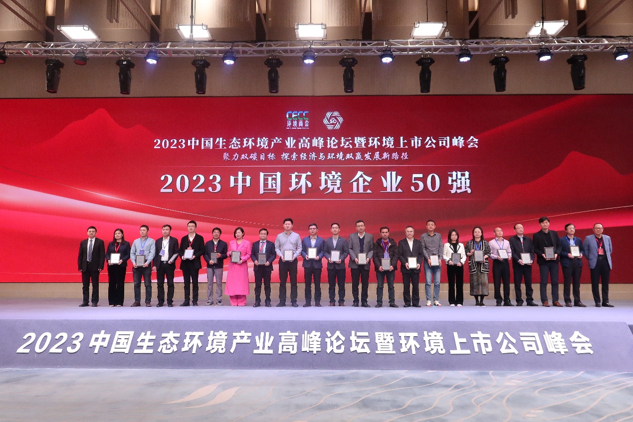 12月14日,由全联环境服务业商会(以下简称“环境商会”)举办的 “2023中国生态环境产业高峰论坛暨环境上市公司峰会” 在浙江湖州举办。论坛同期发布“2023中国环境企业50强”榜单,清新环境再次入围,位列第12名,较上年度跃升7名。全国工商联副主席、中国科学院院士安立佳,湖州市委书记陈浩,生态环境部对外合作与交流中心首席专家唐艳冬,北京大学环境科学与工程学院院长刘永参加论坛。全国工商联环境商会会长,清新环境党委副书记、总裁李其林主持开幕式并致辞;清新环境党委副书记何文毅代表企业领奖。