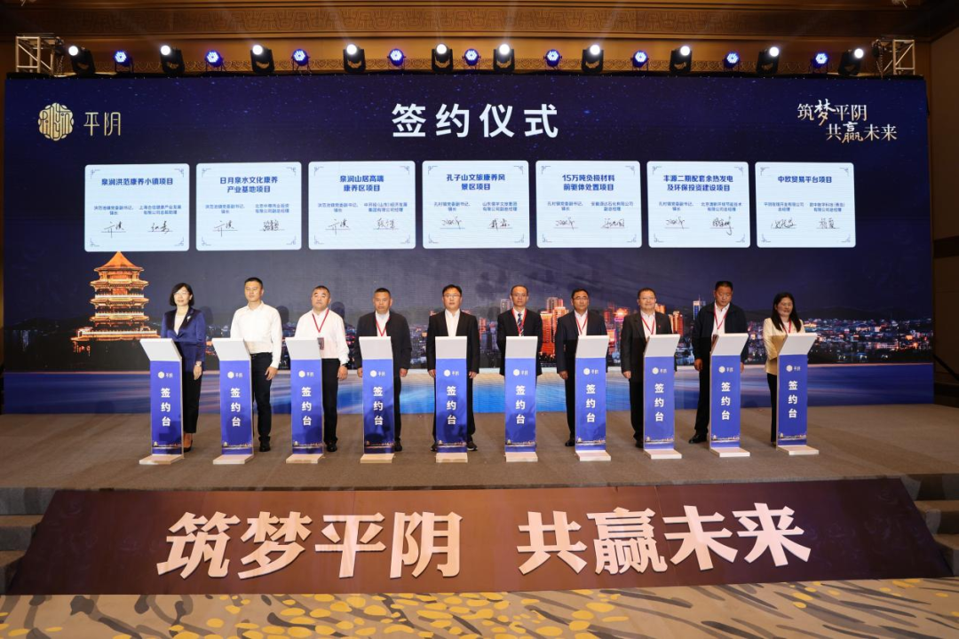 10月27日,“筑梦平阴,共赢未来”山东省济南市平阴县重点项目推介暨招商引资项目集中签约大会在山东大厦成功举办。活动现场,总投资493亿元的29个项目进行了集中签约,这些项目涉及实体经济、新能源、城市更新、文旅康养等领域,清新环境投资的“丰源二期配套烟气冷却及环保一体化投资建设项目”位列其中。济南市委常委、宣传部部长戴龙成,济南市副市长杨丽,平阴县领导王秀成、潘建军、尚海成、李子元等,以及相关嘉宾参加了本次活动。清新环境节能事业部总经理徐家彬作为公司代表上台签约。