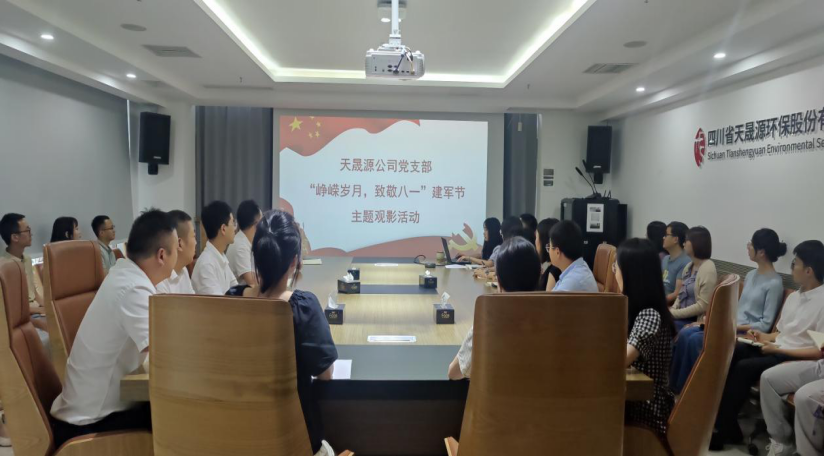 天晟源环保党支部组织党员、入党积极分子、部分职工开展“峥嵘岁月,致敬八一”主题观影活动,重温红色电影《建国大业》。现场职工座谈交流,纷纷表示要学习继承革命先辈以身报国的崇高精神,坚定理想信念,做到爱党、为党、永远跟党走。活动中,公司领导对退役军人进行了慰问并送上了真切的祝福,感谢他们在过去与现在为国家和公司做出的贡献。