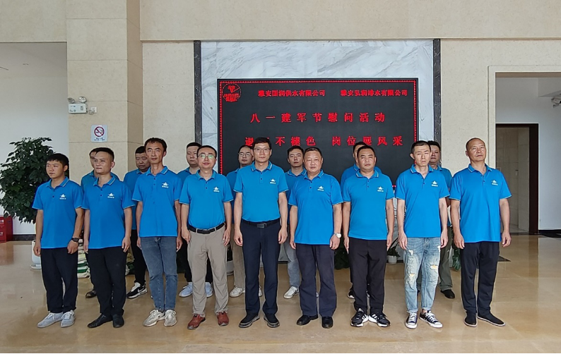 雅安项目联合党支部组织高管及全体退役军人,在园区办公楼大厅开展退役军人庆祝八一建军节“退伍不褪色、岗位展风采”慰问活动。