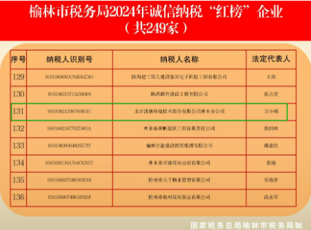 日前,榆林市举行2024年第四次“诚信榆林”建设新闻发布会。会上,国家税务总局榆林市税务局发布2024年诚信纳税“红榜”企业,清新环境神木分公司(以下简称“神木分公司”)凭借卓越的纳税表现,荣登诚信纳税“红榜”。